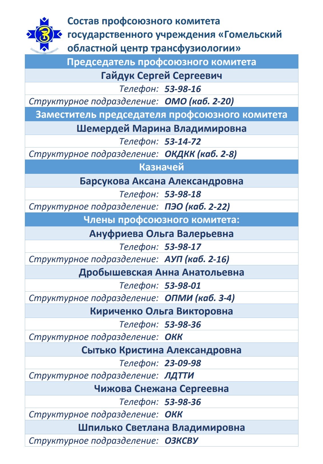 Политика первичной профсоюзной организации государственного учреждения «Гомельский областной центр трансфузиологии» в отношении обработки персональных данных