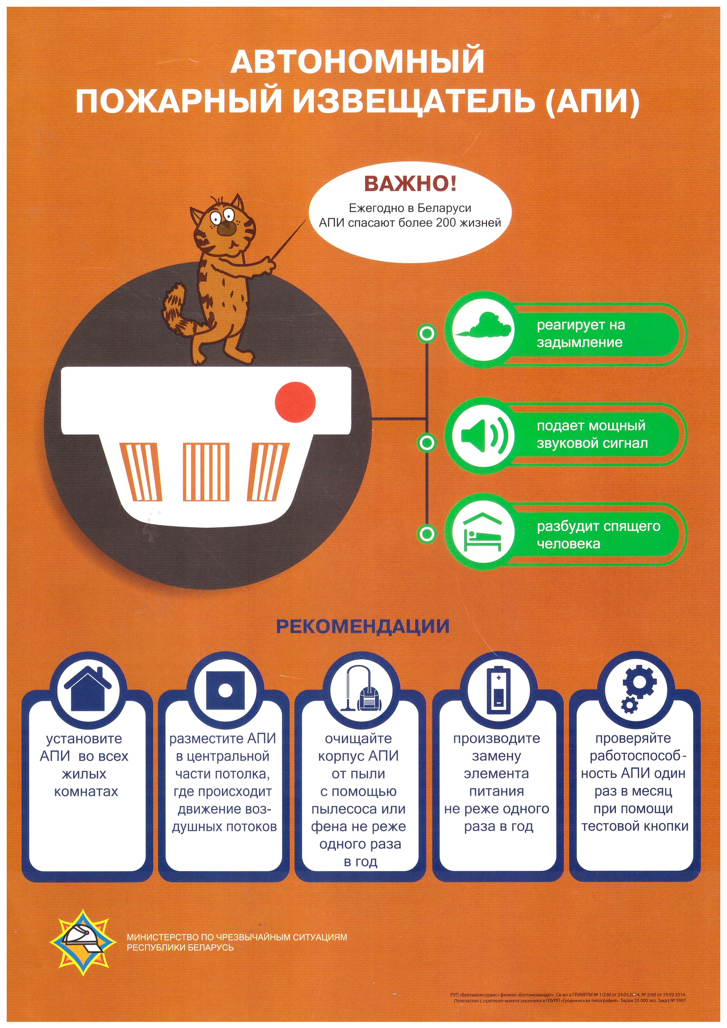 Министерство по чрезвычайным ситуациям напоминает о соблюдении правил пожарной безопасности и рекомендует установить в своих домовладениях данные устройства! Помните, в случае пожара не паникуйте и звоните по телефонам 101 или 112!