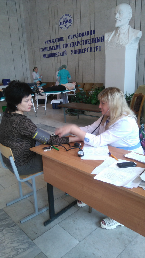 14 июня 2017 г. был организован забор крови в выездных условиях у безвозмездных доноров на базе УО «Гомельский государственный медицинский университет». Безвозмездно дали кровь студенты, преподаватели университета, главные врачи организаций здравоохранения, сотрудники управления здравоохранения Гомельского облисполкома. Все доноры получили благодарственные письма и памятные сувениры.