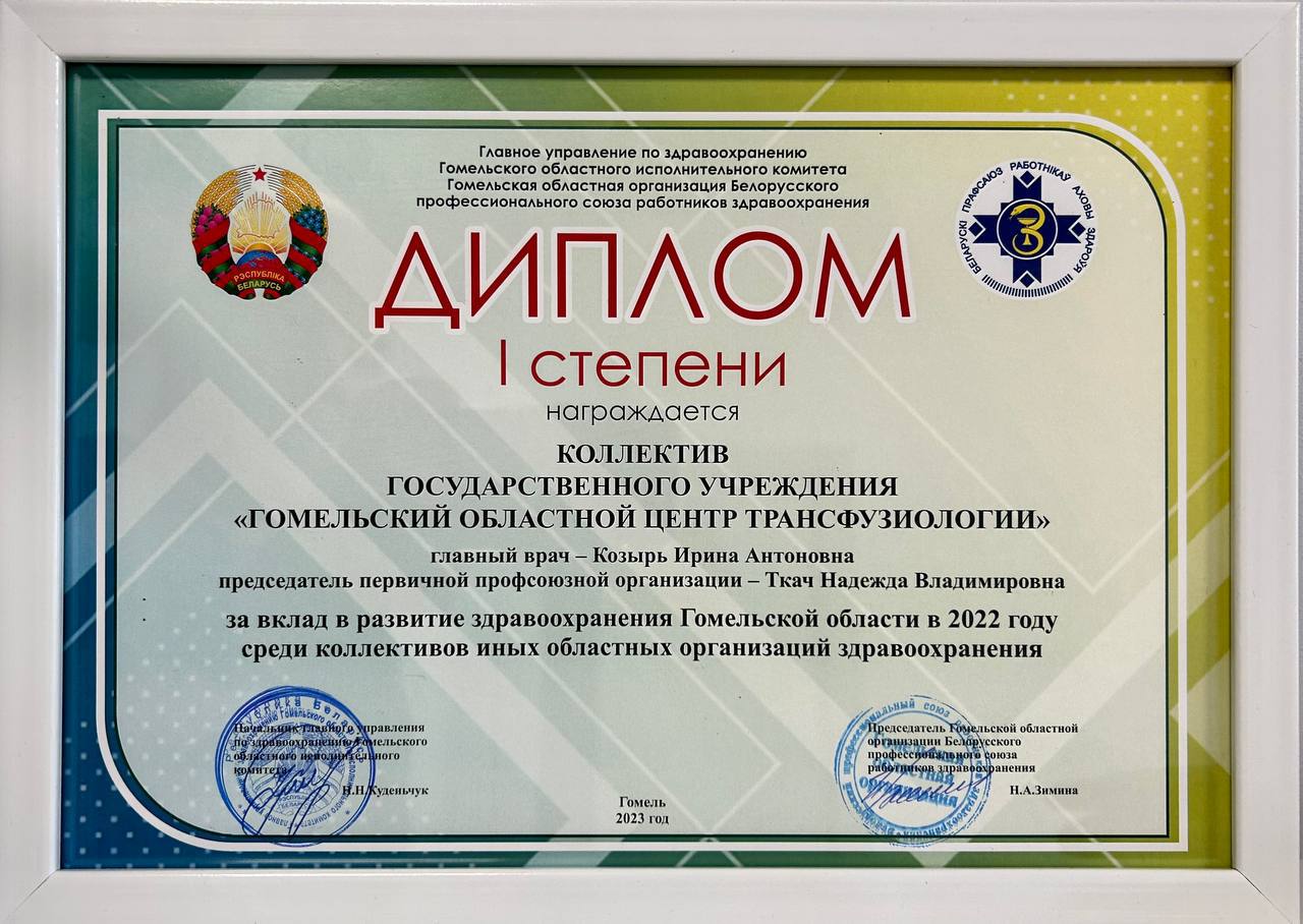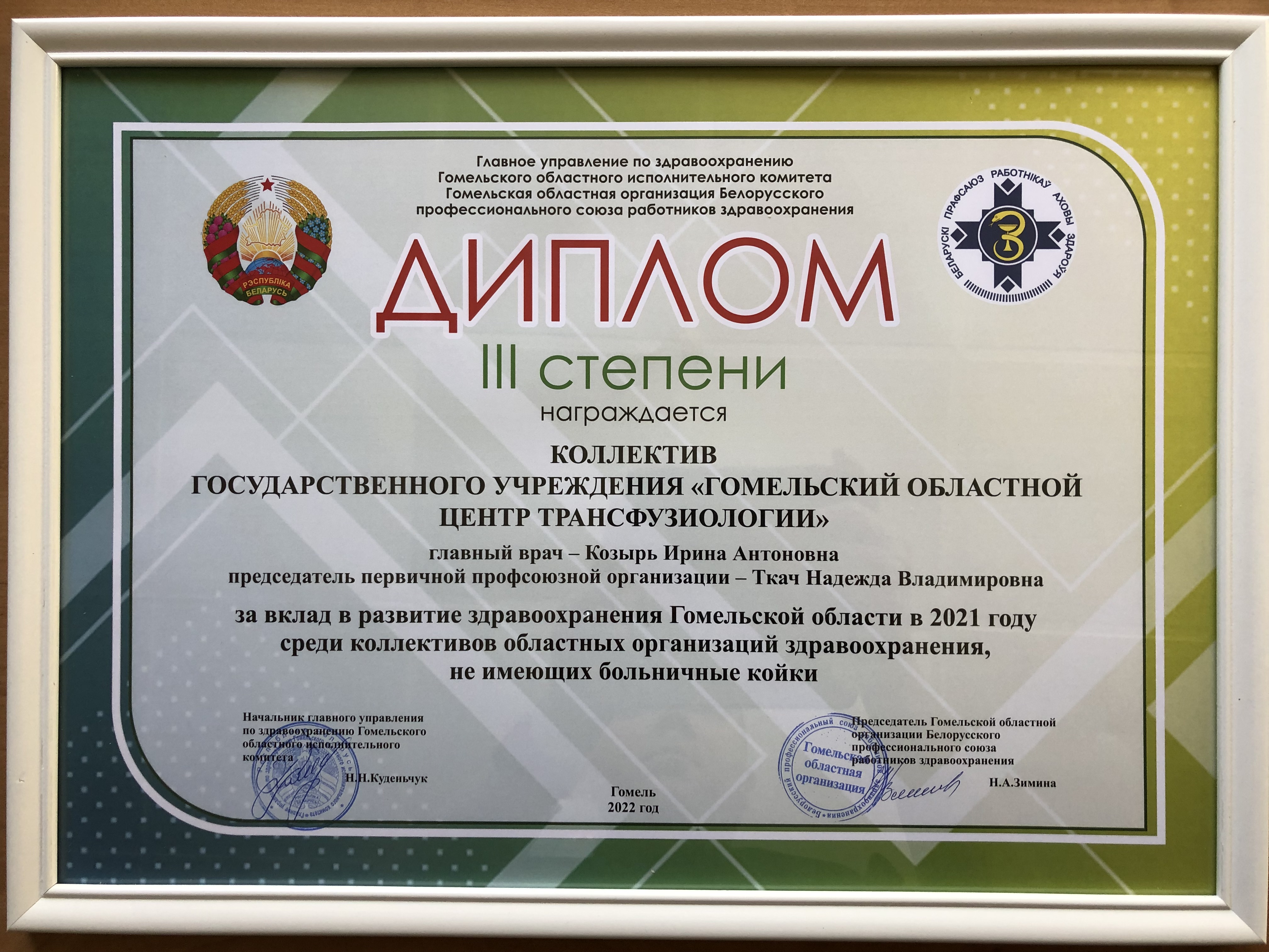 Государственное учреждение «Гомельский областной центр трансфузиологии» является организацией службы крови.